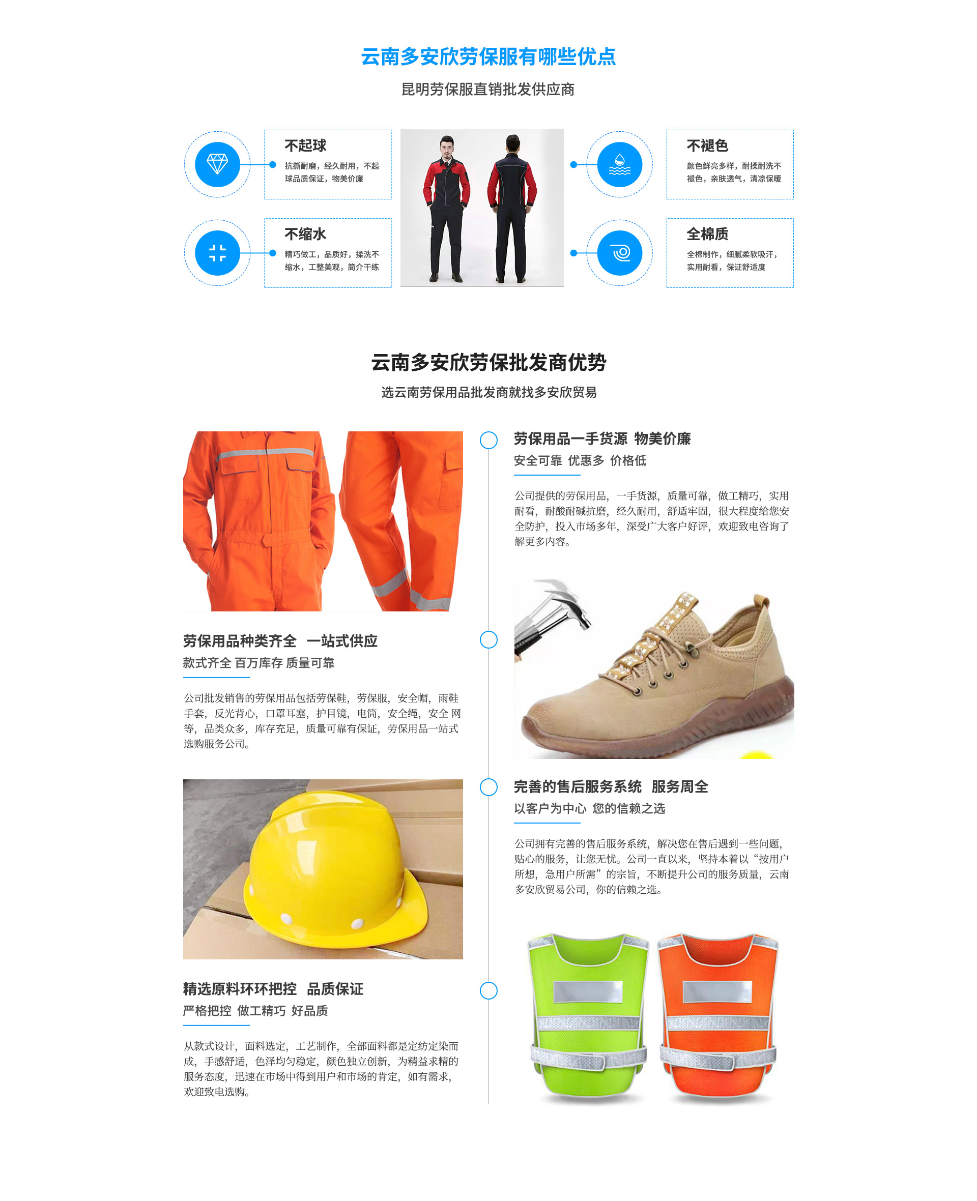 云南多安欣貿(mào)易有限公司位于云南省昆明市官渡區(qū)昌宏路東聚五金建材市場(chǎng)東區(qū)10-10。云南多安欣貿(mào)易有限公司是一家集生產(chǎn)。銷(xiāo)售、批發(fā)為一體的大型勞保用品單位。公司成立18年有余,在這18年里我們憑借我們行業(yè)知識(shí),認(rèn)真的態(tài)度和售后服務(wù),在云南市場(chǎng)迅速崛起,同時(shí)代理銷(xiāo)售國(guó)內(nèi)外各優(yōu)良廠商(普通、特種)勞動(dòng)防護(hù)用品。安全防護(hù)用品,公司現(xiàn)有員工15人,公司一直以來(lái),堅(jiān)持本著以“按用戶所想,急用戶所需”的宗旨,從款式設(shè)計(jì),面料選定,工藝制作,為精益求精的服務(wù)態(tài)度,迅速在市場(chǎng)中得到用戶和市場(chǎng)的肯定,公司經(jīng)營(yíng)品種達(dá)到一萬(wàn)余種,包含了勞保用品的各個(gè)系列,如定制工裝、頭部防護(hù),呼吸防護(hù),勞保鞋,電力物資雨衣類(lèi)眼臉部位防護(hù),3m系列,墜落安全防護(hù),交通安全設(shè)施電筒類(lèi)多功能防護(hù)服、防塵防毒。耐酸堿。耐油,耐高溫,防寒,阻燃,隔熱,氣體監(jiān)測(cè),絕緣防靜電,防砸高空墜落,救護(hù),逃生,等特種勞保用品,如(彩條布,吊帶軟梯噸袋安全帽,...